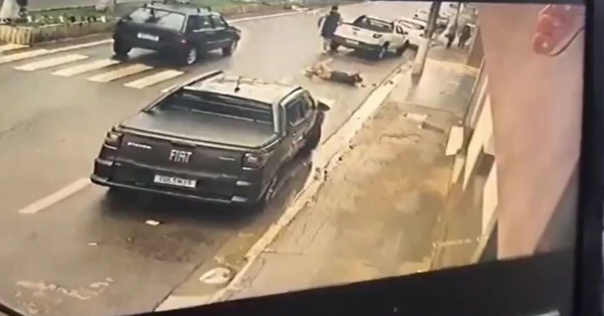 Imagens divulgadas nas redes sociais mostram o momento em que o idoso atravessa de uma calçada para outra e é atingido por um veículo que trafegava na via. Após o impacto, ele fica caído no chão, enquanto populares se aproximam para tentar ajudá-lo.