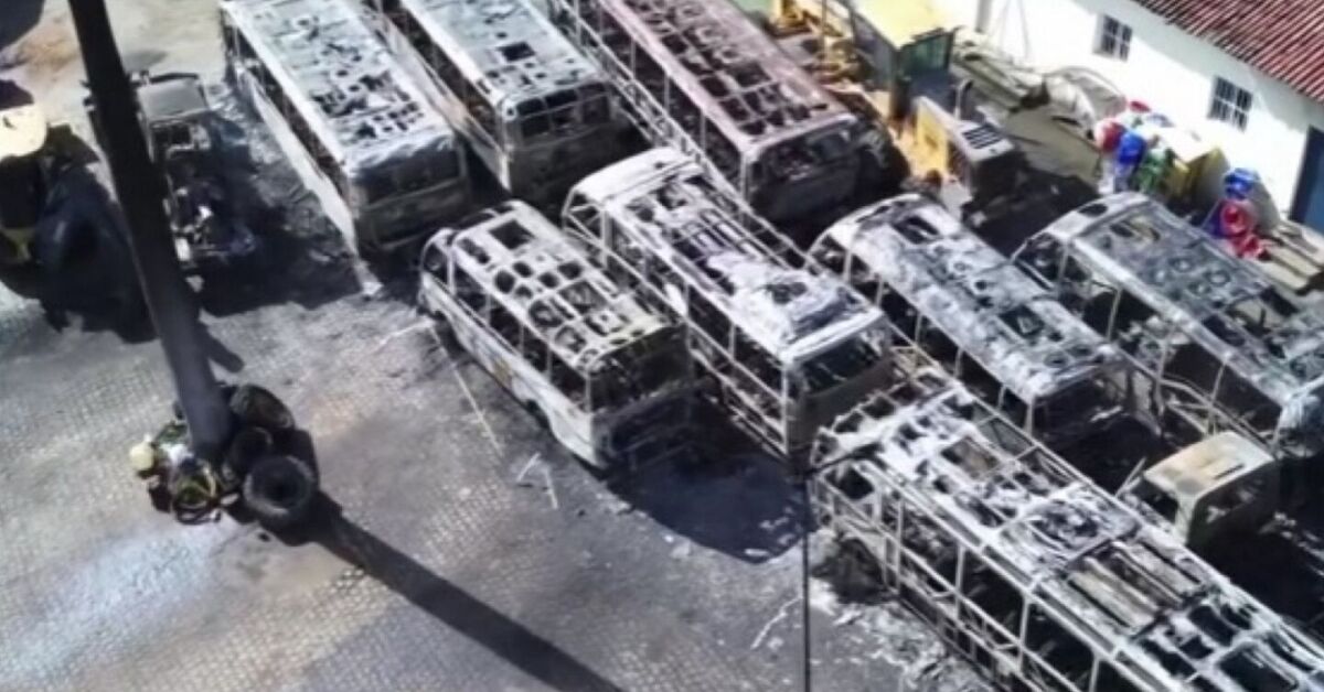 Resultado da frota de ônibus após incêndio. Foto: Reprodução