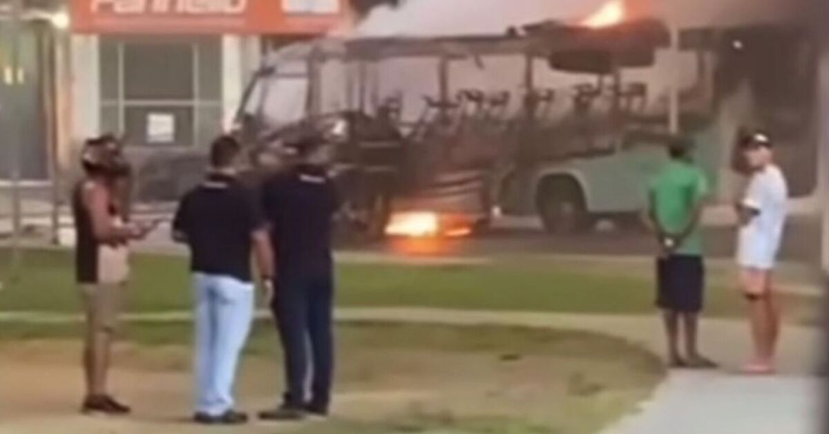 Micro-ônibus pegando fogo em Jaboatão. Foto: Reprodução