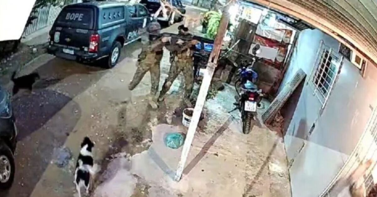 Vídeos mostram os policiais invadindo a casa e retirando um dos corpos enrolado em um lençol. A ação foi realizada por integrantes do Batalhão de Operações Policiais Especiais (Bope), que, conforme a denúncia, não estavam em missão oficial no momento do crime.