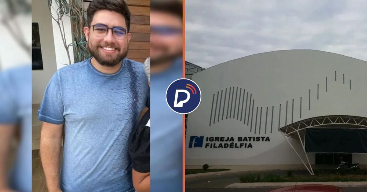 Gabriel de Sá Campos, de 30 anos, réu por abusar adolescentes e Igreja Batista Filadélfia, onde ele era líder de grupo de jovens. Fotos: Reprodução. Arte: Portal de Prefeitura