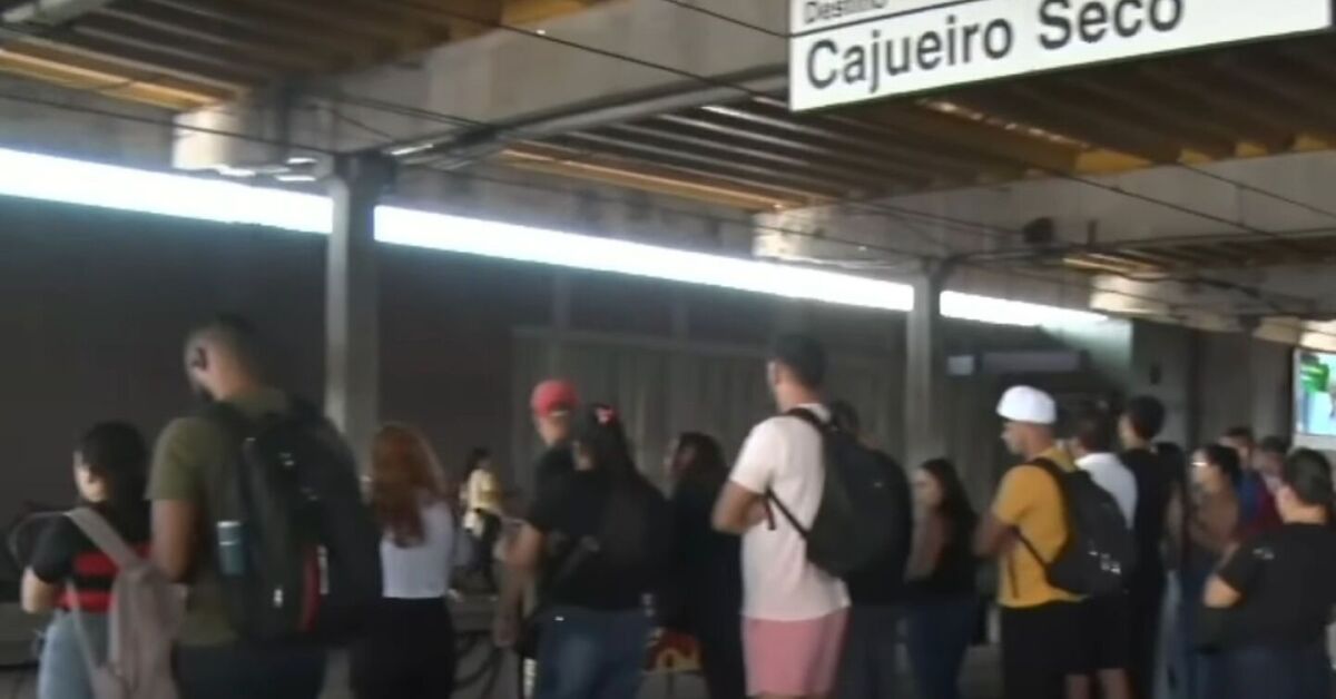 Usuários do metrô do Recife na estação Cajueiro Seco. Foto: TV Guararapes/Reprodução