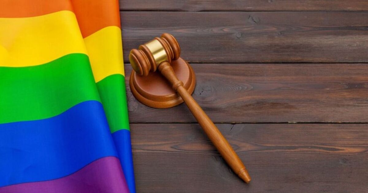 Martelo da justiça e bandeira homossexual. Foto: Freepik