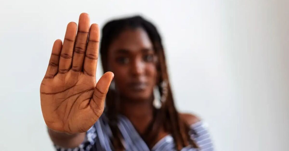 Imagem de uma mulher com a palma da mão aberta, ilustrando a tentativa de parar com o racismo. Foto: Agência Brasil