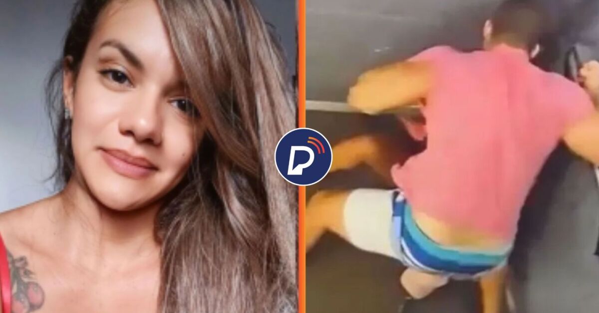 Mulher que foi espancada e momento da agressão. Fotos: Reprodução. Arte: Portal de Prefeitura