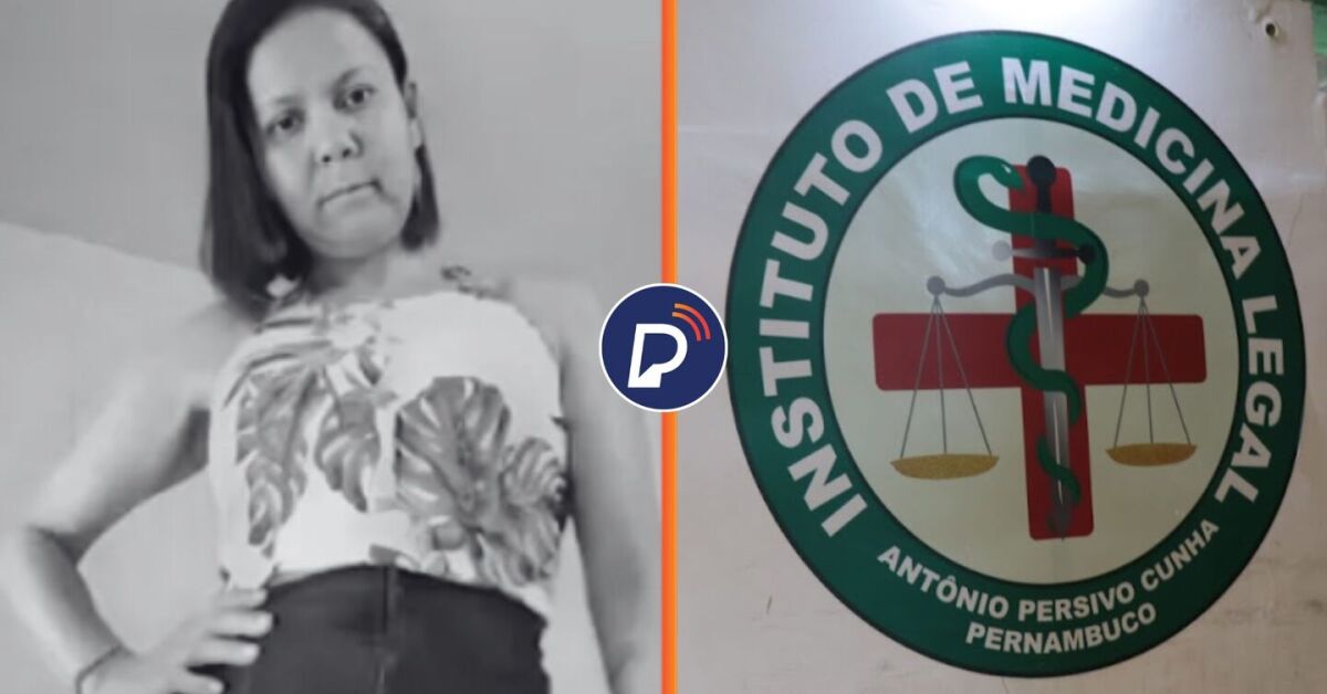 Mulher que foi executada a tiros e IML, no Recife. Fotos: Reprodução e Bruno Vila Nova. Arte: Portal de Prefeitura