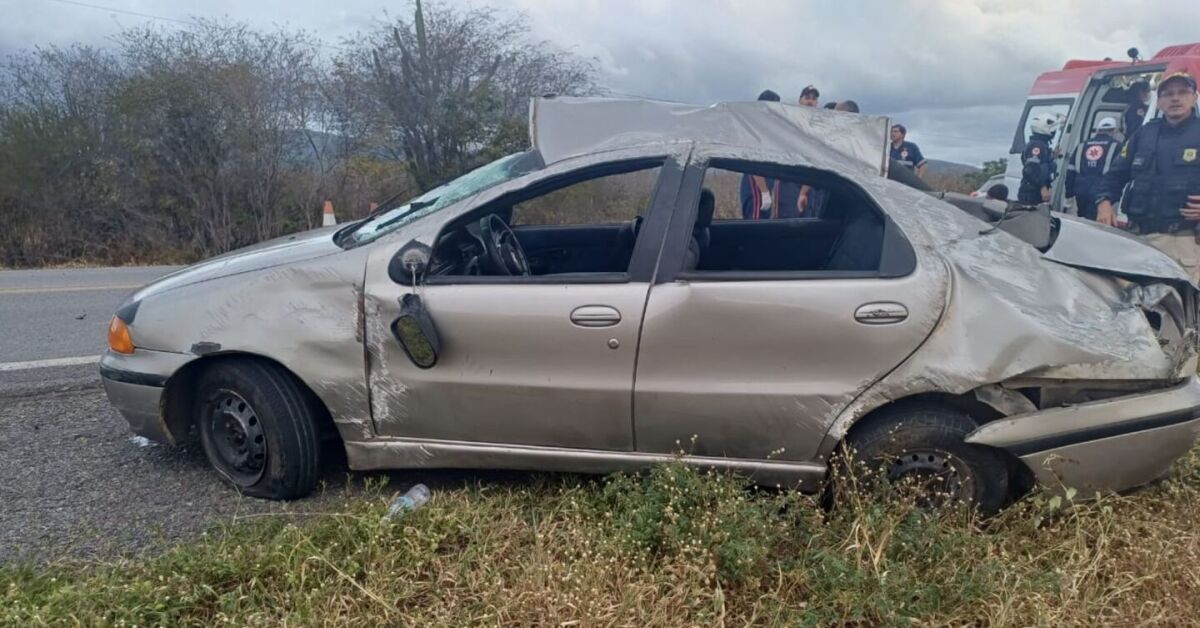 Carro que capotou na BR-104, em Pernambuco. Foto: PRF/Divulgação
