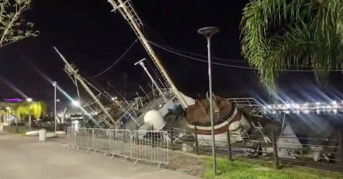 Navio histórico tomba e metade da embarcação fica submersa em SP. Foto: Reprodução/Redes sociais