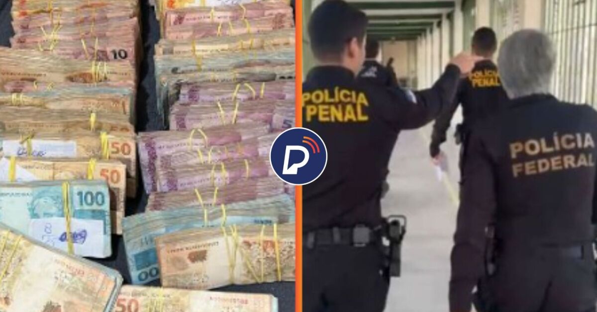 Dinheiro apreendido e agentes da PF em Pernambuco. Fotos: PF/Divulgação. Arte: Portal de Prefeitura