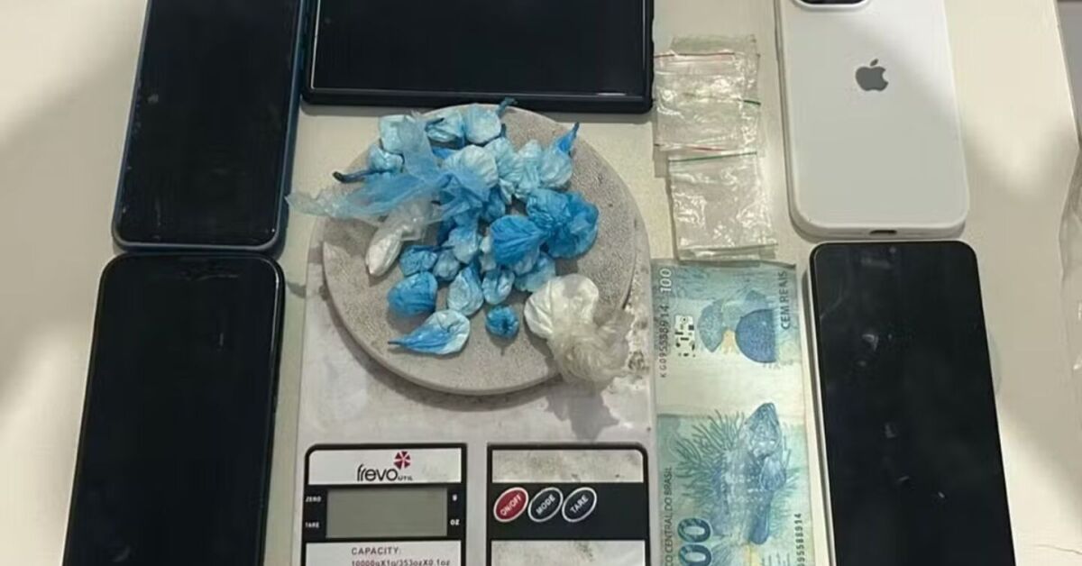 Com o suspeito, foram apreendidos 107 invólucros e outras 225g de maconha, 171 pedras de crack, dois simulacros de arma de fogo, quatro balanças de precisão e R$ 35 em espécie.