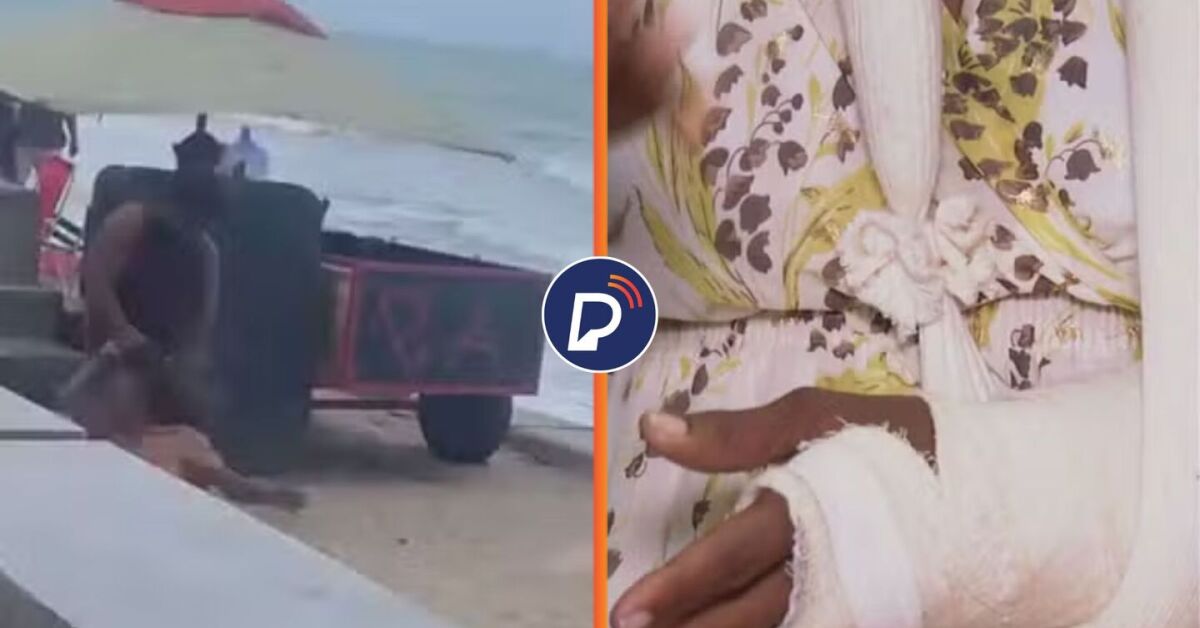 Momento em que homem agride comerciante em praia do Recife e braço quebrado. Fotos: Reprodução. Arte: Portal de Prefeitura