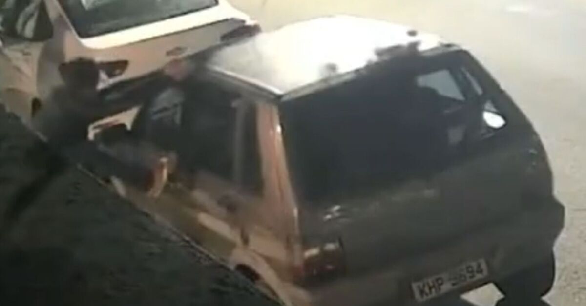 As imagens mostram o suspeito se aproximando a pé e rendendo a motorista logo após o desembarque das crianças. Ele aponta a arma, abre a porta dianteira e, em seguida, a traseira do carro. Uma das crianças, uma menina de aproximadamente 10 anos, desce rapidamente.