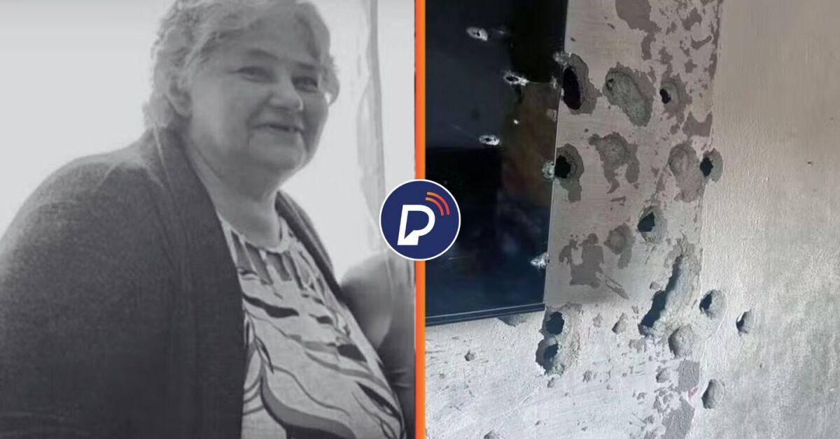 Idosa que morreu em confronto e marcas de bala. Fotos: Reprodução. Arte: Portal de Prefeitura