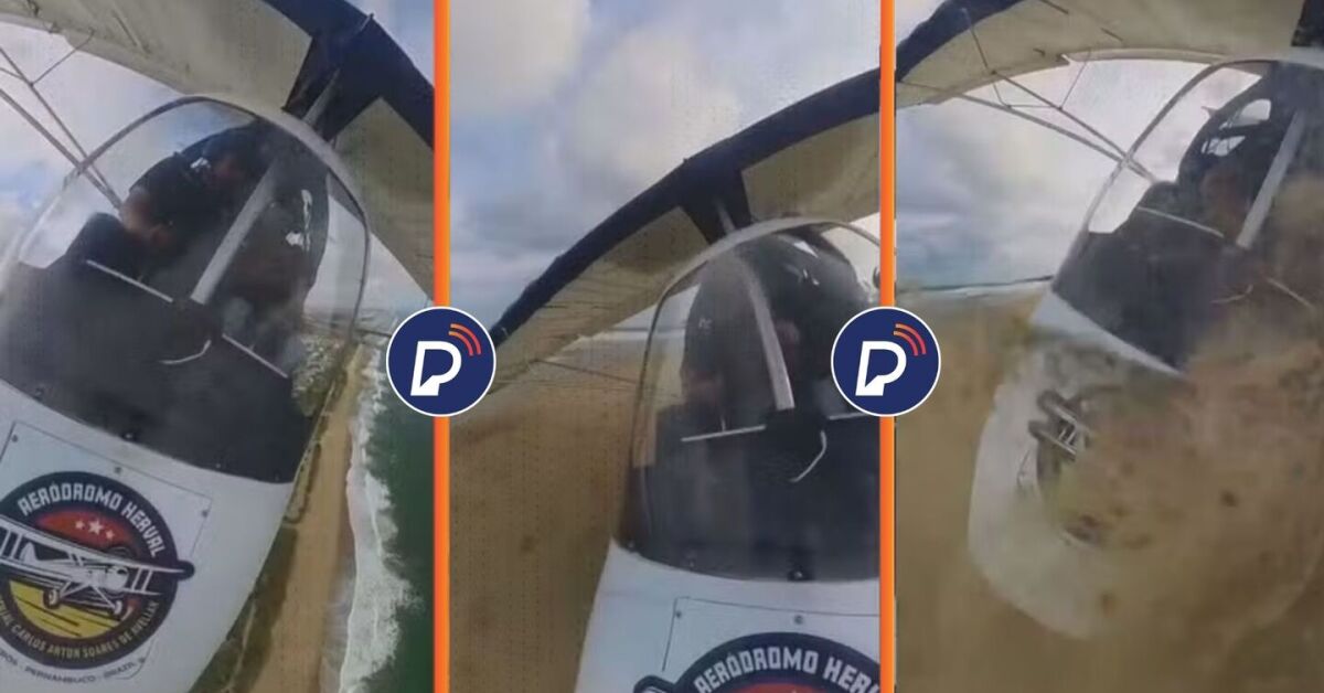 As imagens mostram o instante exato em que a aeronave desce de forma irregular, toca a vegetação e acaba sendo arremessada para fora da pista. Apesar do impacto, o prefeito não sofreu ferimentos graves.