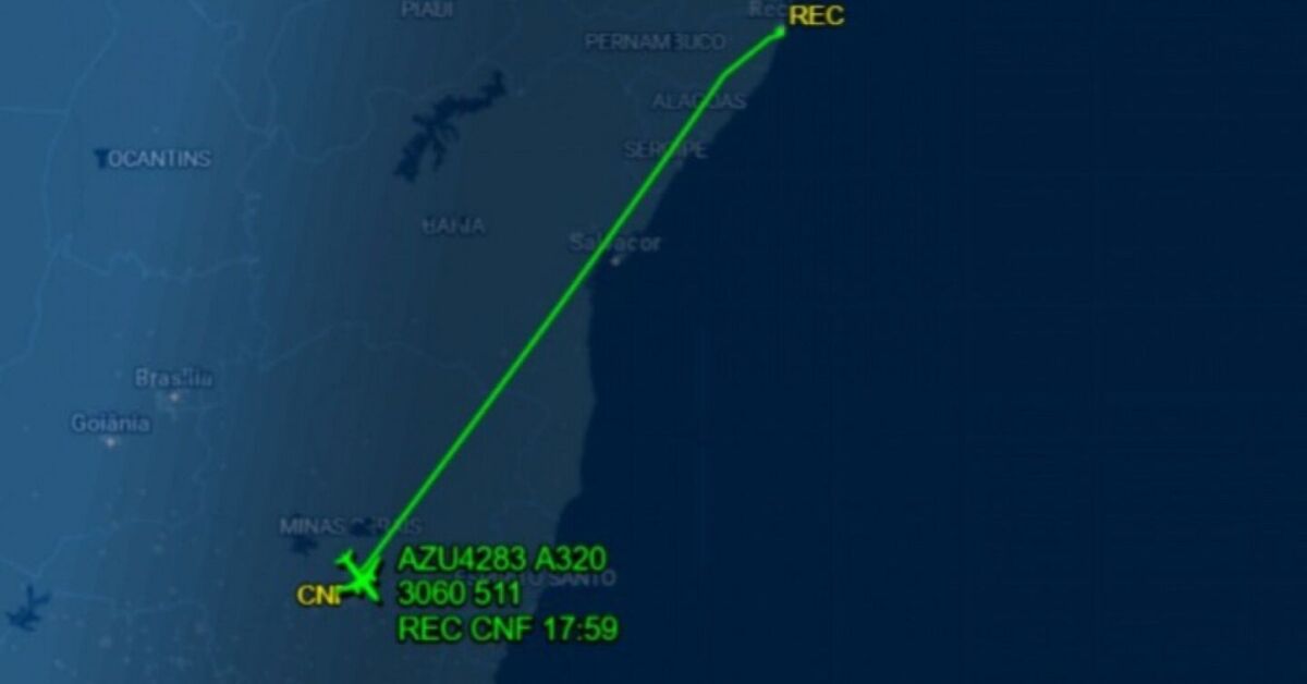 O voo AD4283, que seguiria para o Aeroporto de Confins, em Minas Gerais, tinha previsão de saída pela manhã, mas só decolou às 15h22. A chegada em Belo Horizonte estava prevista para as 18h09.