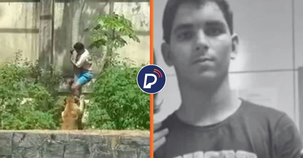 Momento antes do jovem ser atacado por leoa em zoológico e Gerson, que morreu pelo animal. Fotos: Reprodução. Arte: Portal de Prefeitura