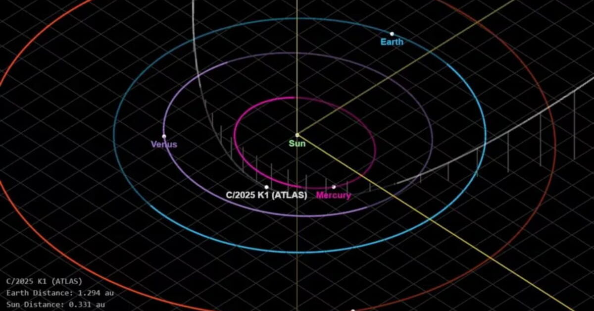 Cometa 3I/ATLAS exibe anomalia inédita com cauda invertida e aceleração misteriosa,. Créditos: NASA/JPL