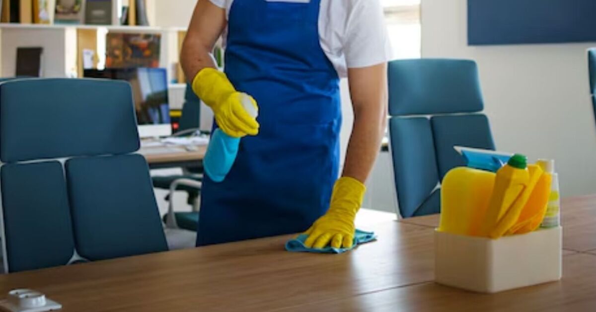 Homem limpando uma mesa de uma casa. Foto: Freepik