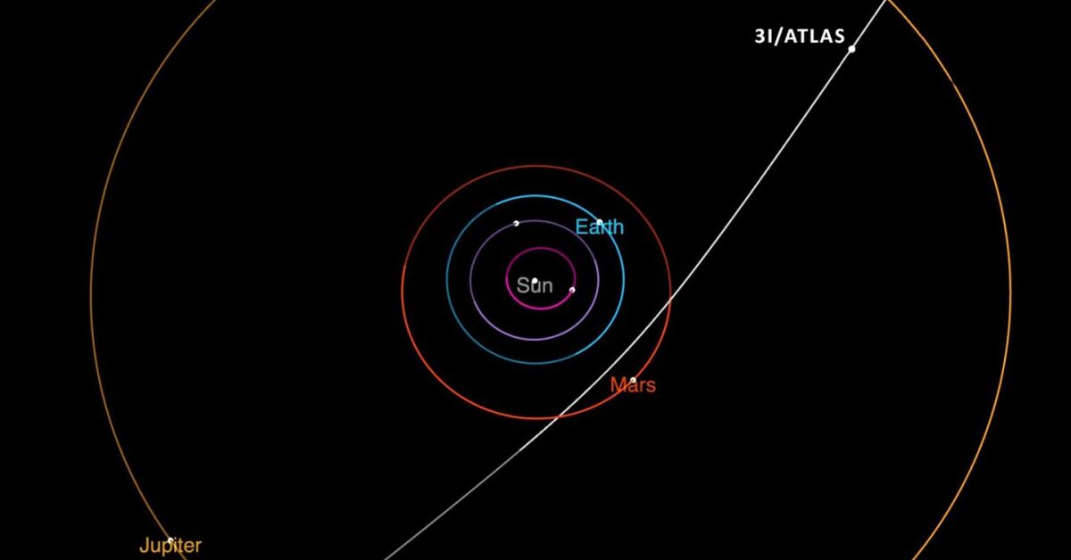 O cometa 3I/ATLAS é o terceiro objeto conhecido de fora do nosso sistema solar a ser descoberto. Os astrônomos classificaram este objeto como interestelar devido à forma hiperbólica de sua trajetória orbital. (Ele não segue uma trajetória orbital fechada em torno do Sol.) Quando a órbita do 3I/ATLAS é traçada no passado, o cometa claramente se origina de fora do nosso sistema solar.
