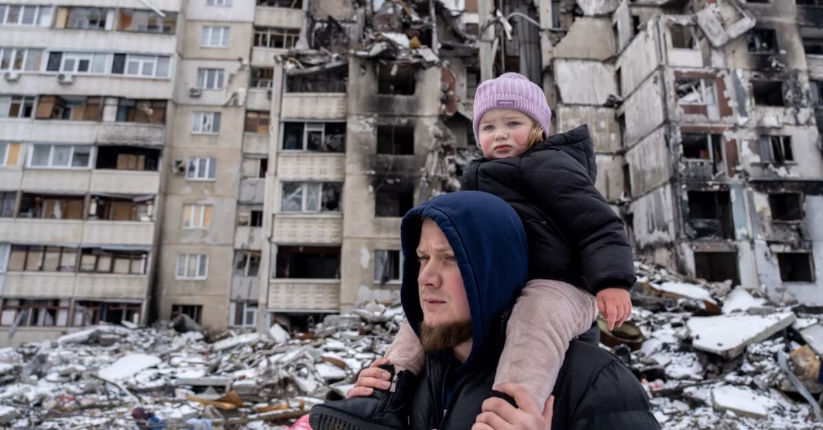 Foto de refugiados e destruição causada pela guerra na Ucrania Crédito: UNICEF/UN0770704/Filippov