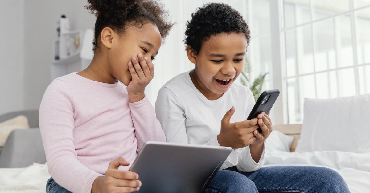 Crianças no celular e tablet. Foto: FreePik.