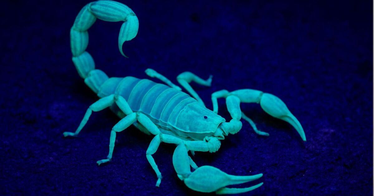 Os escorpiões podem parecer criaturas silenciosas, mas quando a luz certa incide sobre eles, revelam um comportamento curioso: a luz ultravioleta faz esses aracnídeos brilharem em tons verde-azulados. Pesquisas indicam que esse fenômeno de fluorescência ocorre porque o exoesqueleto do escorpião absorve radiação ultravioleta e emite luz visível depois.