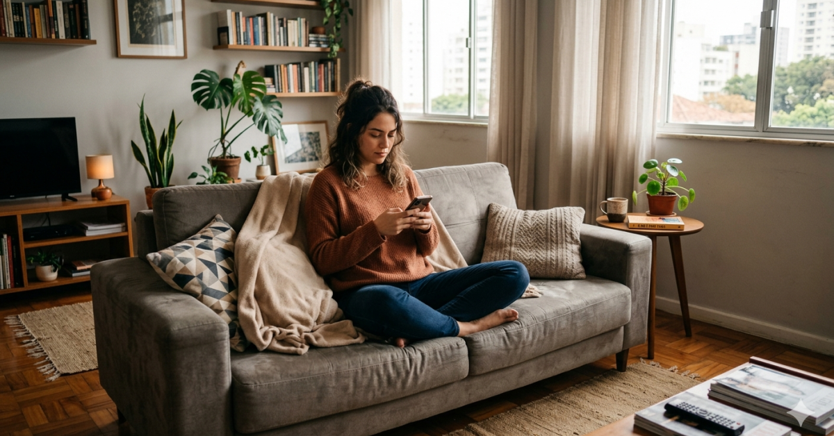 Mulher morando sozinha em seu apartamento Foto IA
