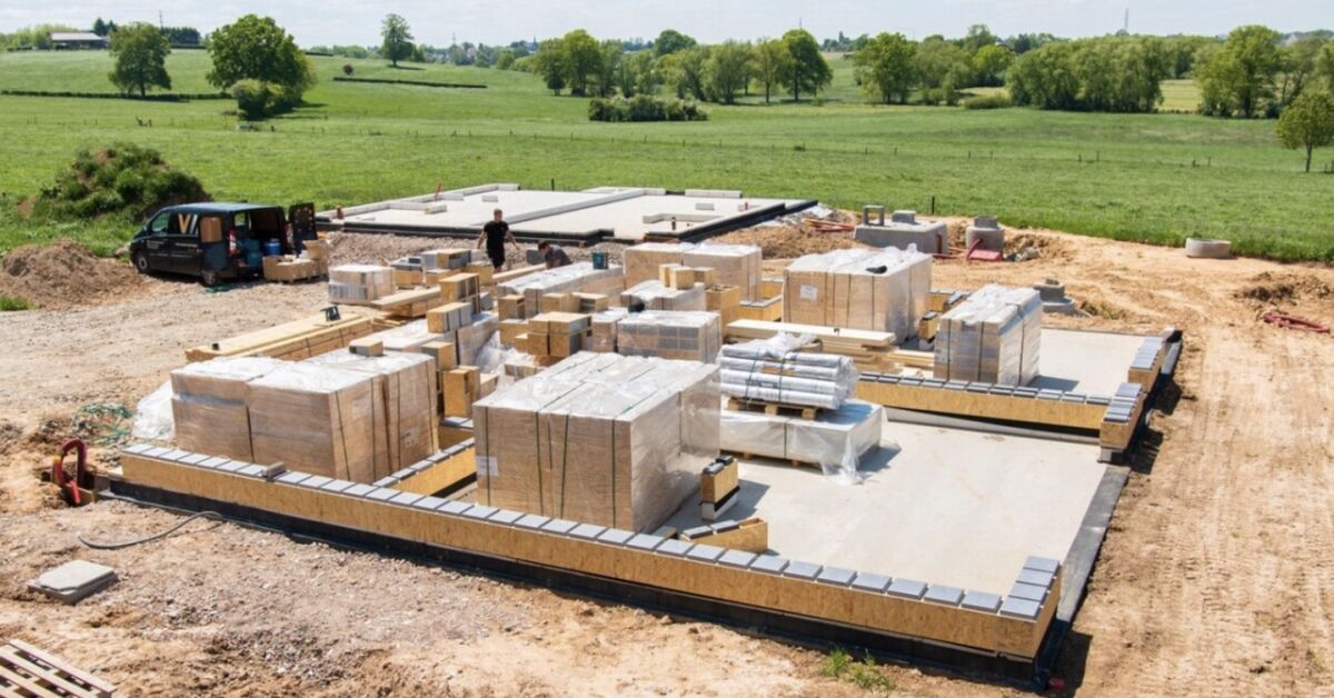 Casa sendo construída em blocos como "LEGO", imagem de casa na Bélgica Foto: Gablok/Divulgação