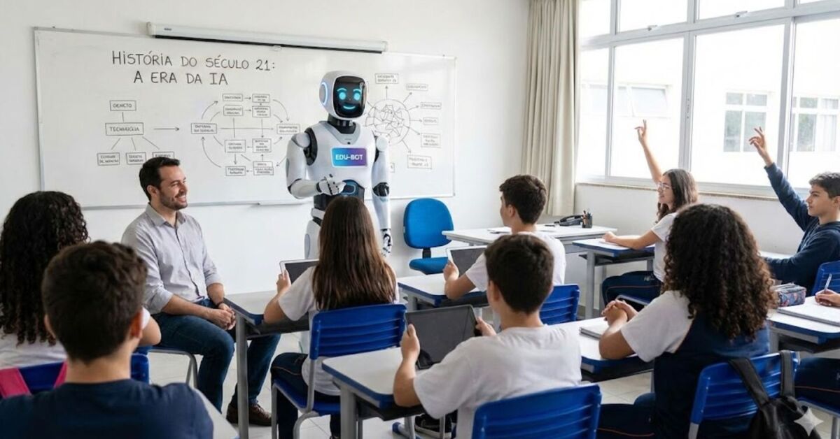 IA no lugar do professor na sala de aula. Foto: Reprodução/Google Gemini