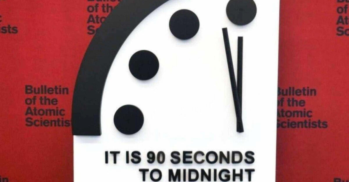 Hoje, o Relógio do Juízo Final marca 90 segundos para a meia-noite, a menor distância já registrada na história.