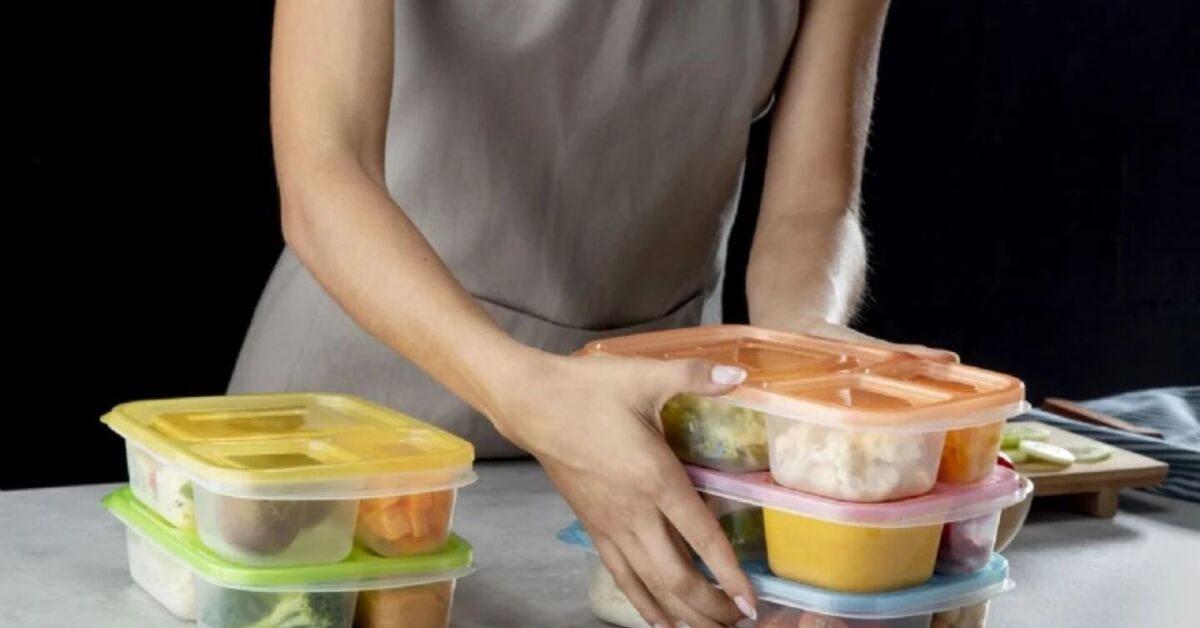 Pessoa armazenando alimentos em potes. Foto: Freepik