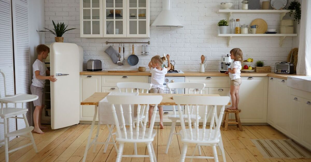 Além das cores, o estilo de cozinha também passa por uma leve redefinição. O que predomina agora é um design com pegada natural e atemporal, com foco em madeira especialmente madeira clara ou de tonalidade média. Essa madeira aparece em pisos, armários e bancadas, reforçando a sensação de aconchego e sobriedade.