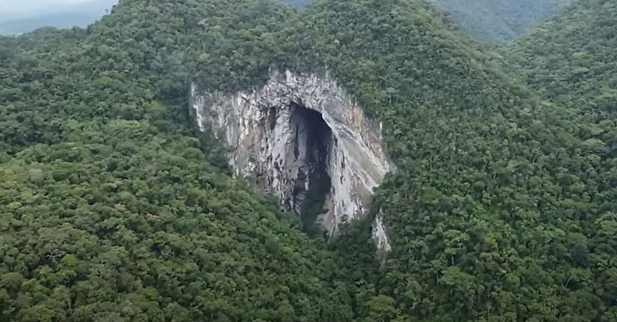 Caverna com maior abertura do mundo. Créditos: Reprodução/Youtube/Manual do Mundo