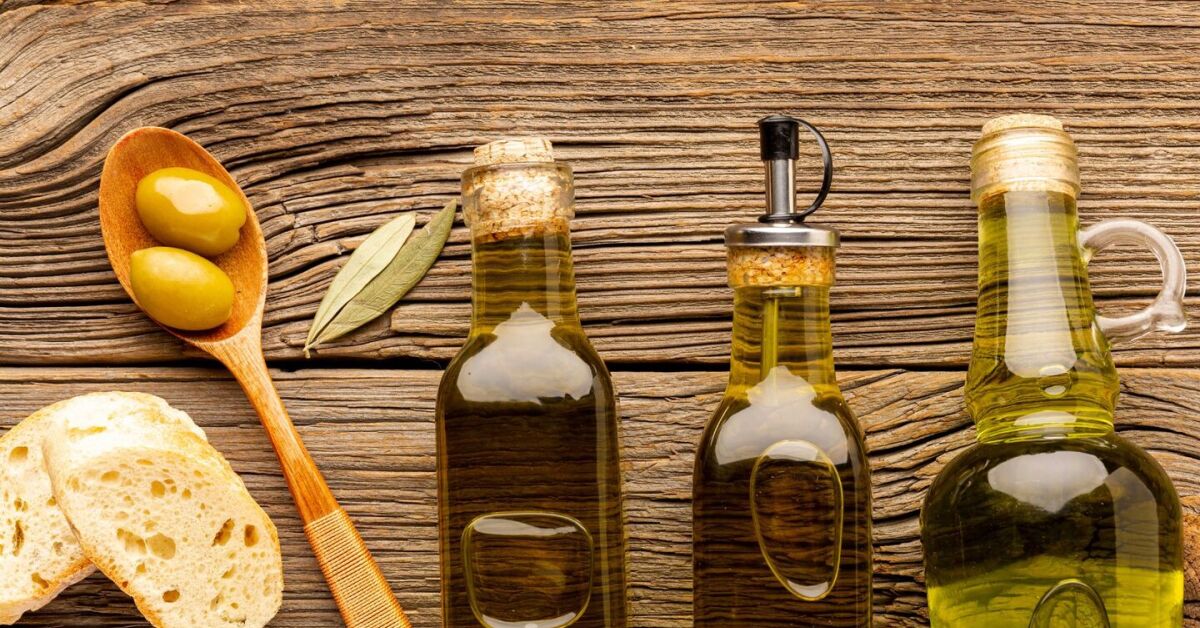 Tipos de azeite lado a lado, mostrando variações de cor e intensidade para diferentes usos. Foto: Freepik