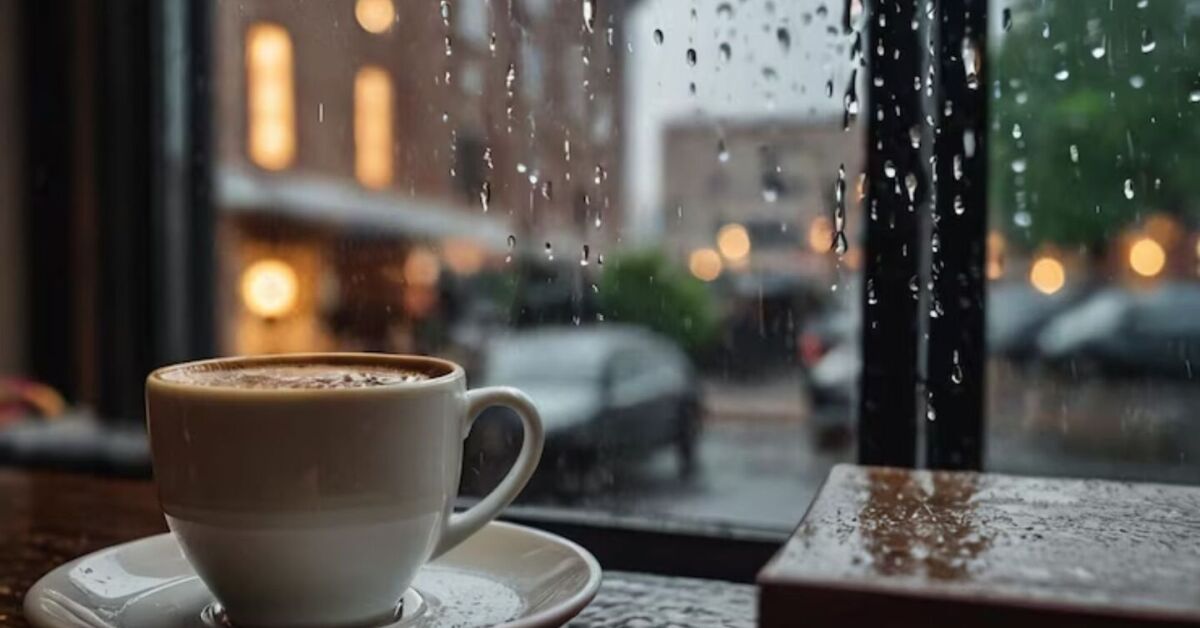 Dia Nacional do Café: xícara de café com livro ao lado em dia chuvoso. Foto: Freepik