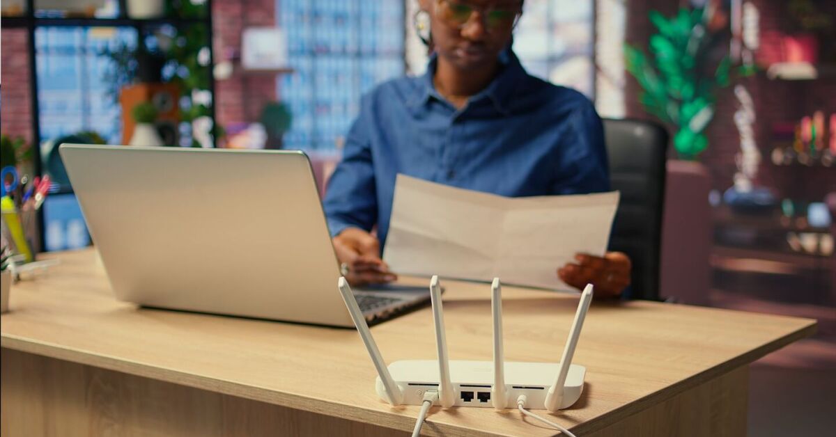 Roteador posicionado sobre a mesa; a instalação aberta e elevada ajuda o sinal Wi-Fi a circular melhor pelo ambiente. Foto: Freepik