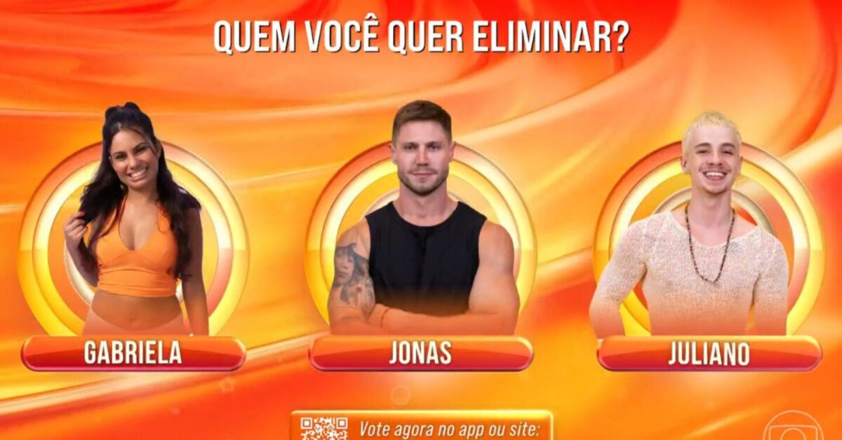 BBB 26: Jonas, Gabriela e Juliano estão no Paredão; veja como foi votação Foto: Reprodução / Rede Globo