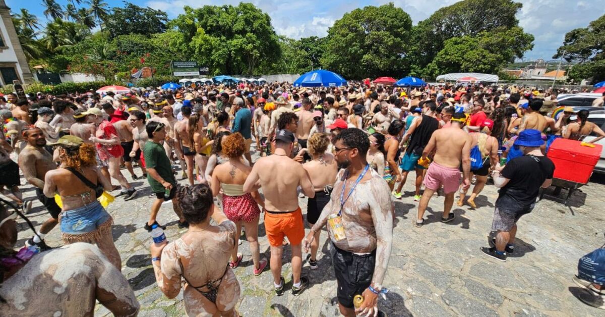 A Praça do Carmo concentra diversos cortejos ao longo da manhã, entre eles Batuques de Pernambuco, Desfile da Bateria Auê e Me Adota. O público também acompanha blocos irreverentes e tradicionais, como Enquanto Isso na Sala da Justiça, Mulher na Vara, Bloco Tira Lama e Bateria Tsunami, espalhados pelas ladeiras e ruas históricas.