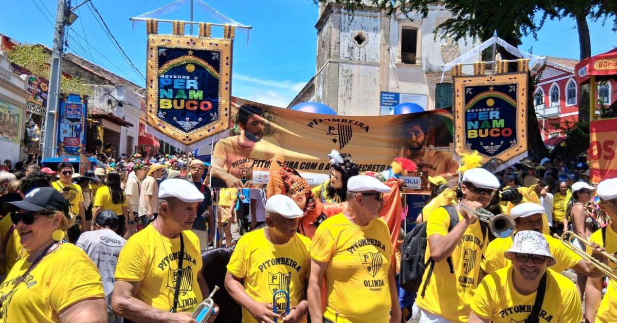 A manhã desta segunda-feira, 16 de fevereiro, foi marcada pela saída da Pitombeira dos Quatro Cantos, tradicional bloco do Carnaval de Olinda. A agremiação deixou a sede, localizada na Rua 27 de Janeiro, por volta das 10h, reunindo foliões pelas ladeiras do Sítio Histórico.
