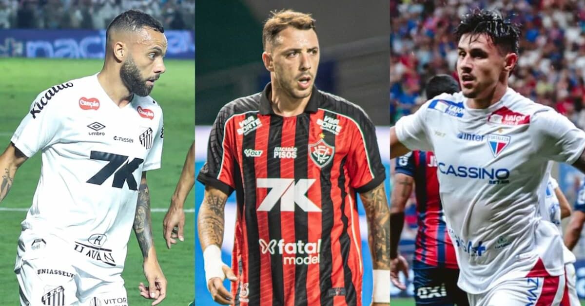 Brasileirão 2025 tem Flamengo favorito e Santos em alerta de risco de queda após a 34ª rodada. Créditos: Reinaldo Campos/Santos F.C|Victor Ferreira/EC Vitória|Matheus Amorim/FEC|Reprodução