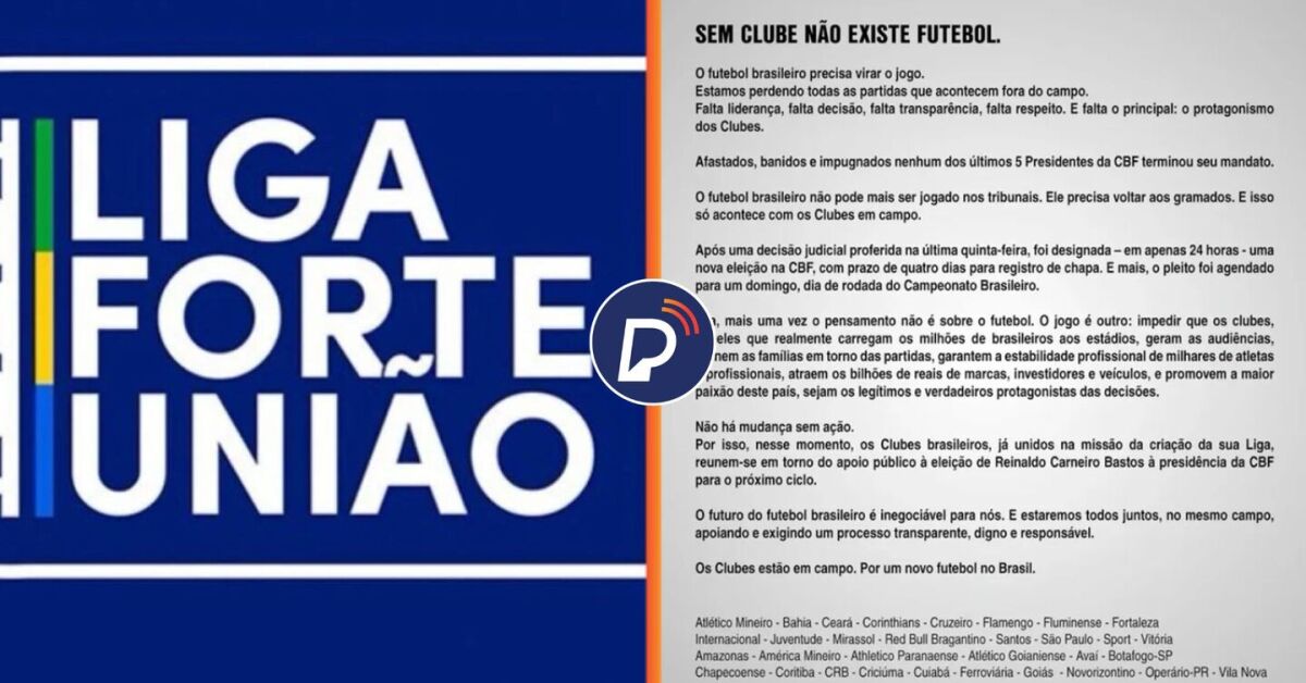 Horas depois, a Liga Forte União (LFU), que representa 32 dos times que disputam as duas primeiras divisões nacionais, declarou apoio à candidatura de Reinaldo. A publicação da associação ainda criticou a data escolhida para a eleição (25 de maio cai em um domingo, dia com jogos pelo Brasileirão), por entender que ela impede que os clubes "sejam os legítimos e verdadeiros protagonistas das decisões".