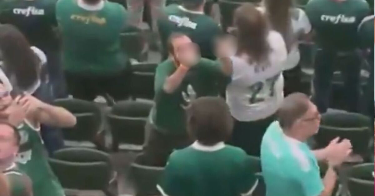 Torcedor do palmeiras fazendo gestos. Foto: Reprodução