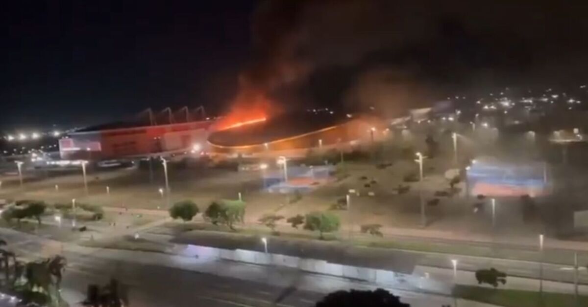 Incêndio atinge Velódromo do Parque Olímpico utilizado no Rio 2016 Foto: Reprodução / Redes Sociais