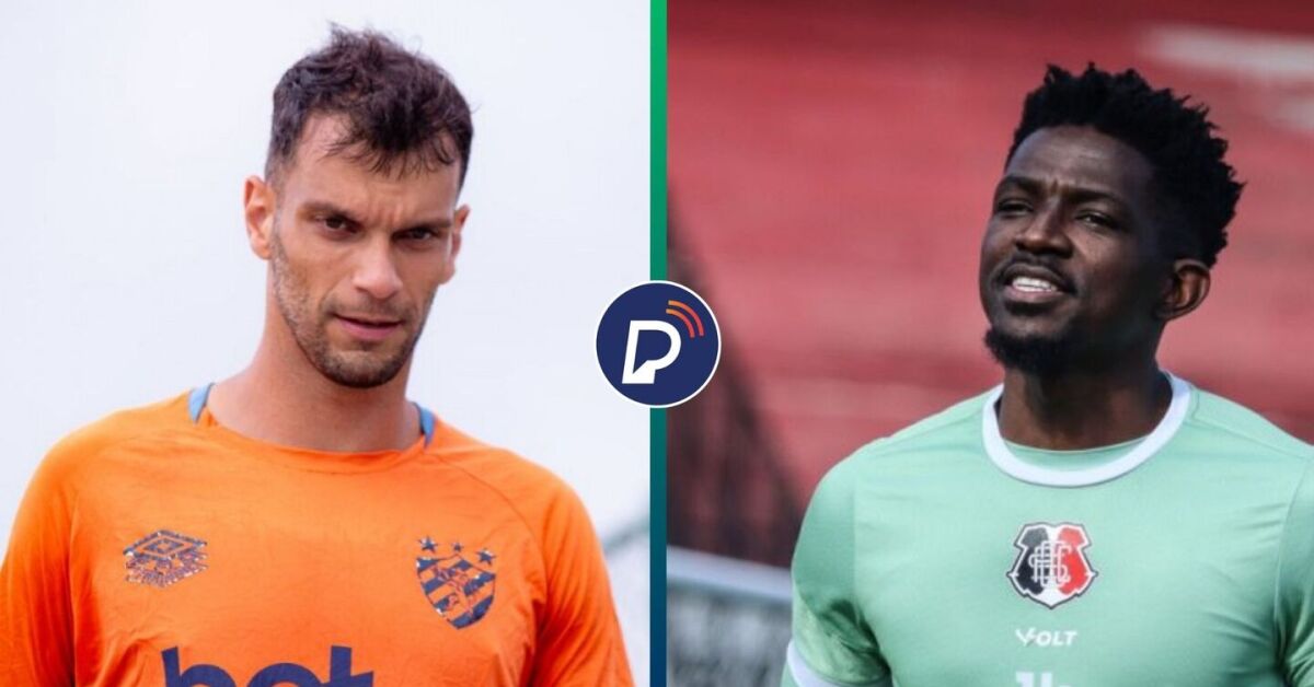 Rafael Thyere, do Sport, e Israel, do Santa Cruz. Foto: Paulo Paiva / Sport e Evelyn Victória / Santa Cruz