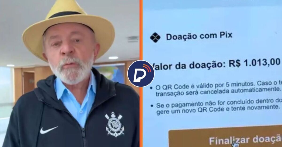 No post, Lula fala enquanto a primeira-dama Janja faz a operação e mostra a tela do computador e do celular, com o comprovante da doação. "Eu estou junto com a torcida do Corinthians porque eu acredito no Pix, no governo, e nós não vamos taxar", reiterou o presidente.