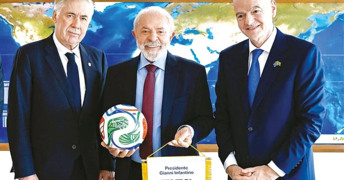 "Apresentamos ao presidente Lula a mudança que vamos fazer. Carlo Ancelotti vai ser o presidente da Fifa e Gianni Infantino vai ser o selecionador do Brasil", disse o dirigente, em tom bem-humorado, antes de adotar um discurso mais sério.