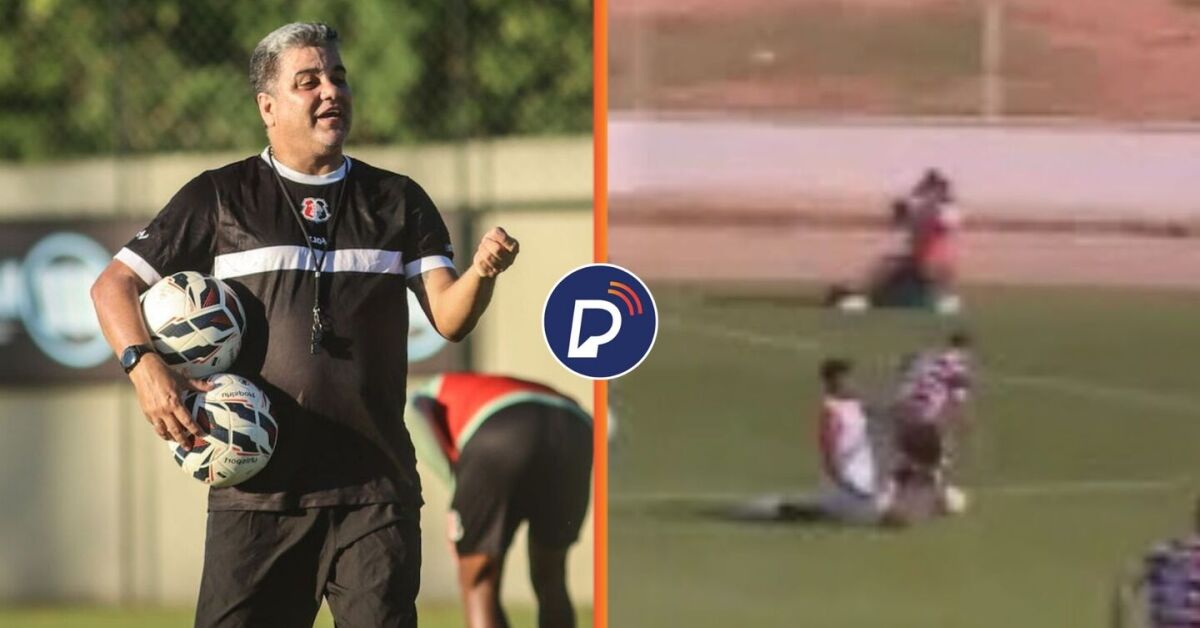 Marcelo Cabo não aceita decisão da arbitragem contra o Santa Cruz e dispara: "Foi muito pênalti" Fotos: Evelyn Victória/SCFC e Reprodução / Rádio Jornal