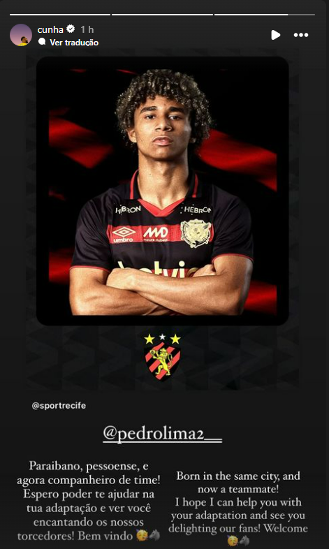 "Sempre acho que eu tenho acompanhado o futebol daqui, e Pedro Lima é um talento, tem um futuro brilhante. É paraibano que vem para o Recife, como aconteceu comigo, e tem uma história bem parecida. Eu desejo o melhor para ele", disse Matheus Cunha.