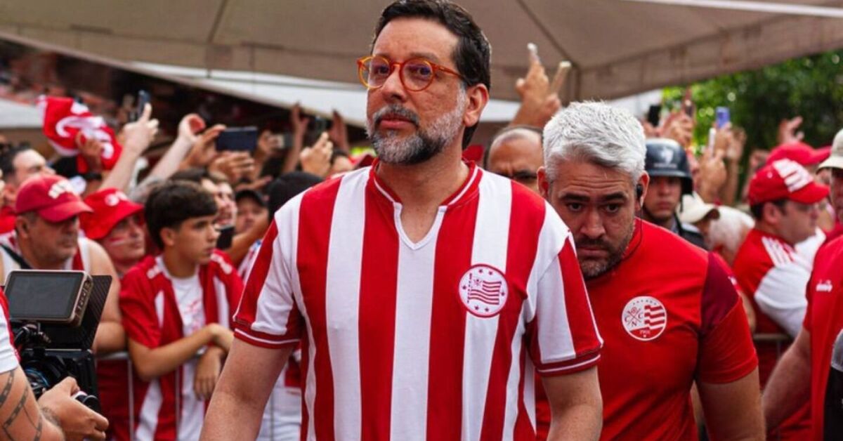 Bruno Becker com camisa do Náutico nos Aflitos. Ano que vem a fornecedora será a Reebok. Foto: Gabriel França / Náutico