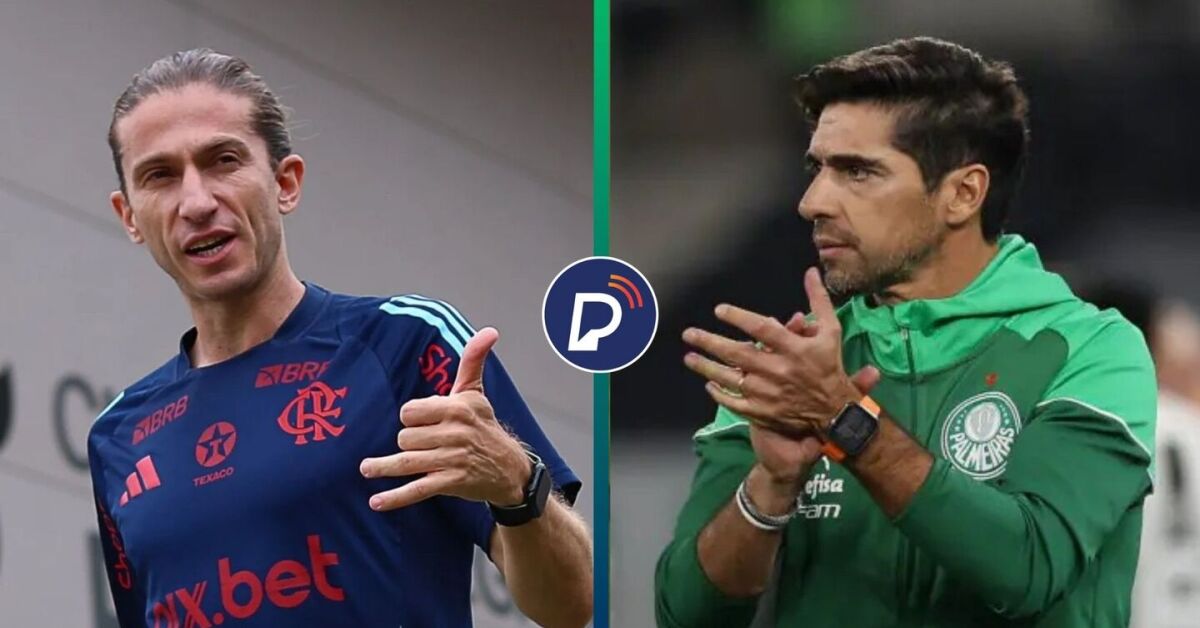 Filipe Luís e Abel Ferreira durante partida do Flamengo e Palmeiras. Equipes se enfrentam na Final da Libertadores Foto: Gilvan de Souza / Flamengo e Cesar Greco / Palmeiras